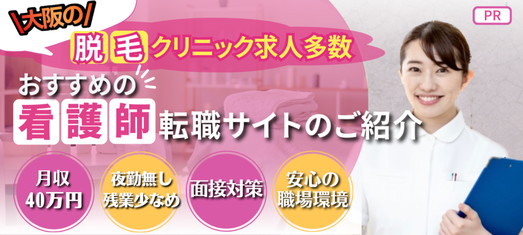 現在、看護師転職サイトのナース専科では、大阪・関西エリアの脱毛クリニック看護師求人特集を行っています。
