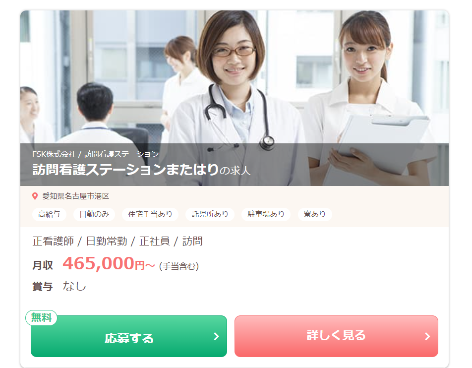 ⇒訪問看護ステーションまたはりの求人を紹介してもらう