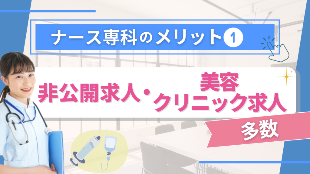 ナース専科のメリット①::非公開求人・美容クリニック求人多数