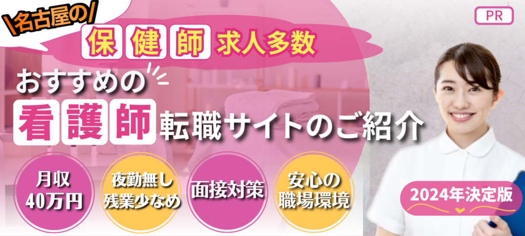 | レバウェル看護 | ・15万件以上 (名古屋エリアの 保健師求人多数) |