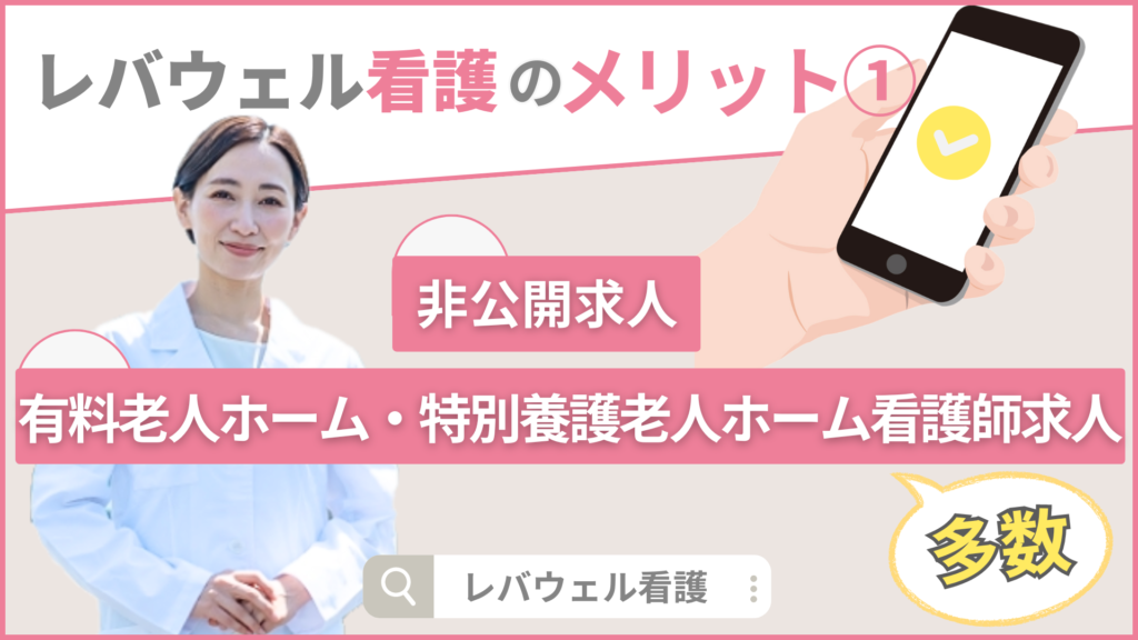 レバウェル看護のメリット①:非公開求人・有料老人ホーム・特別養護老人ホーム看護師求人多数